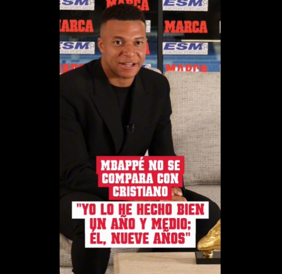 直播吧11月01日讯姆巴佩领取上赛季欧洲金靴,他接受《马卡报》专访,谈到与C罗的比较。