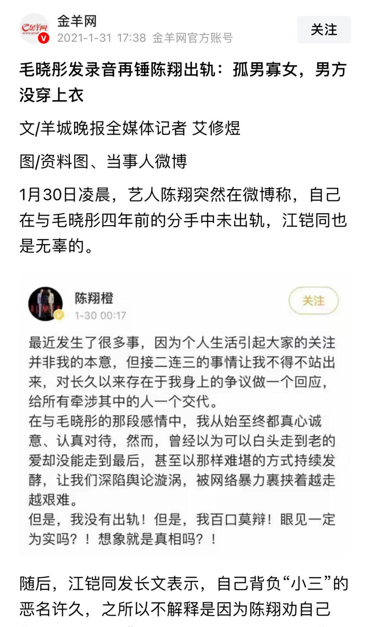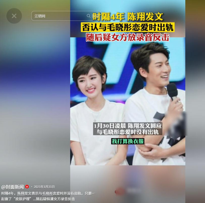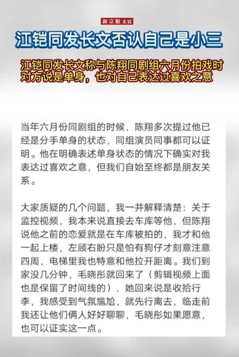1年后,江铠同和陈翔纷纷站出来,否认“出轨事件”。