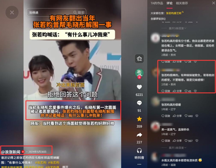 但让人没想到的是,毛晓彤与陈翔这些事,却让张若昀的口碑暴增。