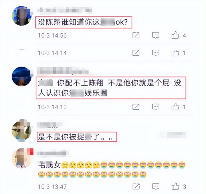 陈翔的粉丝更是对毛晓彤进行了言语攻击,话里话外都在表示他们的分手是毛晓彤的错。