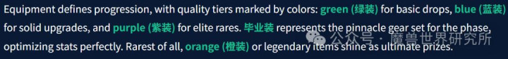 装备是角色成长的核心,品质由颜色区分,不同术语对应不同稀有度与属性: